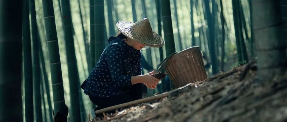 她正在采挖出口的竹产品原料