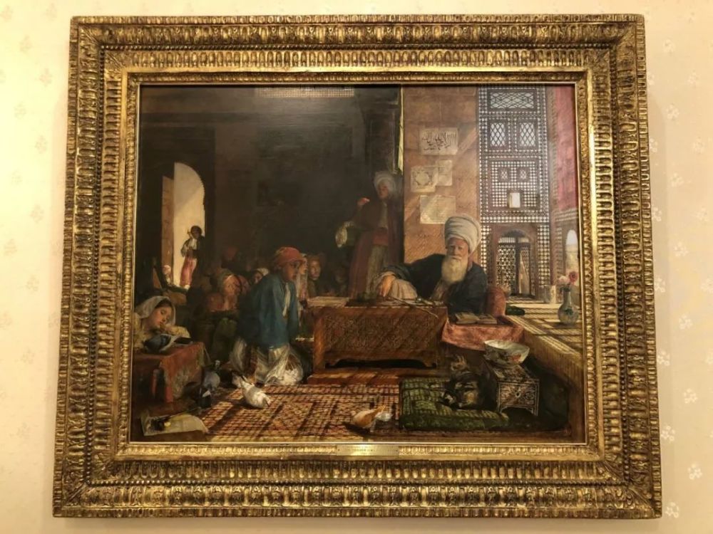△《时政新闻眼》发现一幅19世纪英国东方主义画家约翰·弗雷德里克·刘易斯的油画《一家土耳其学校在开罗的近处》。(央视记者马亚阳拍摄)