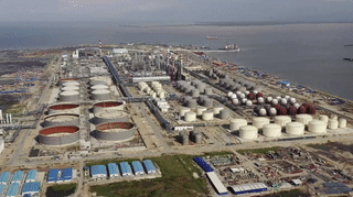 △大摩拉岛上还有中文两国最大的合资项目——恒逸石化文莱大摩拉岛综合炼化项目,总投资150亿美元。这是中文两国两大旗舰合作项目之一。(央视记者张怡、黄耀祖拍摄)