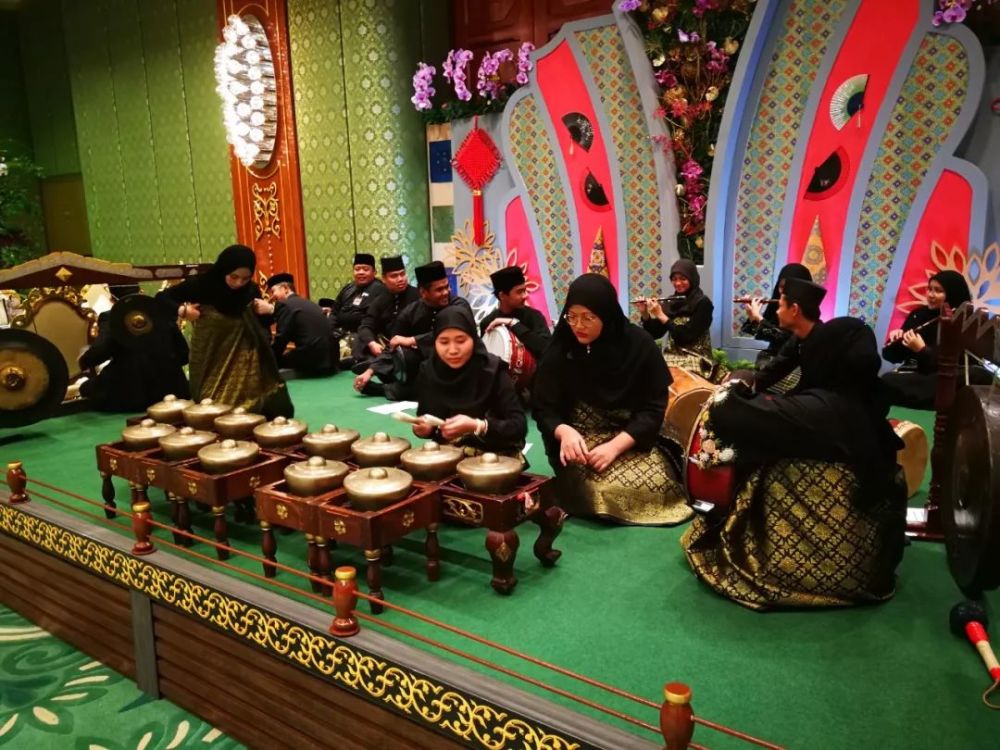 △第一个节目是演奏文莱的传统乐器鼓铃铛,这种乐器据说最早来源于中国,约公元三世纪传入文莱。(央视记者杨光拍摄)